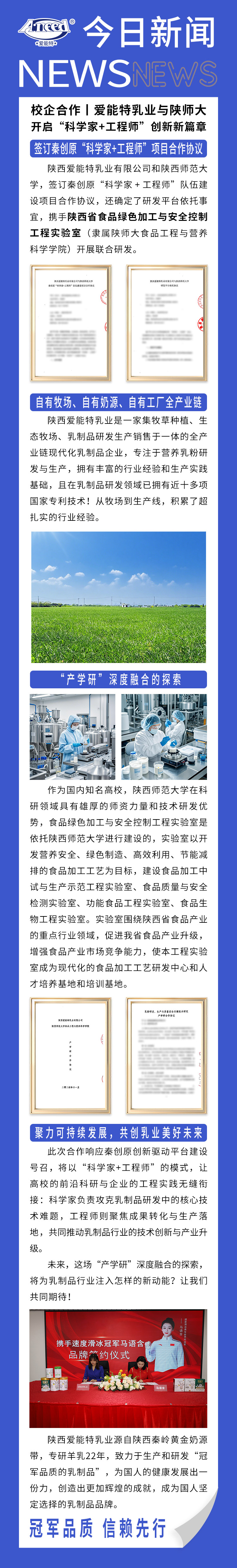 校企合作丨爱能特乳业与陕师大 开启“科学家+工程师”创新新篇章